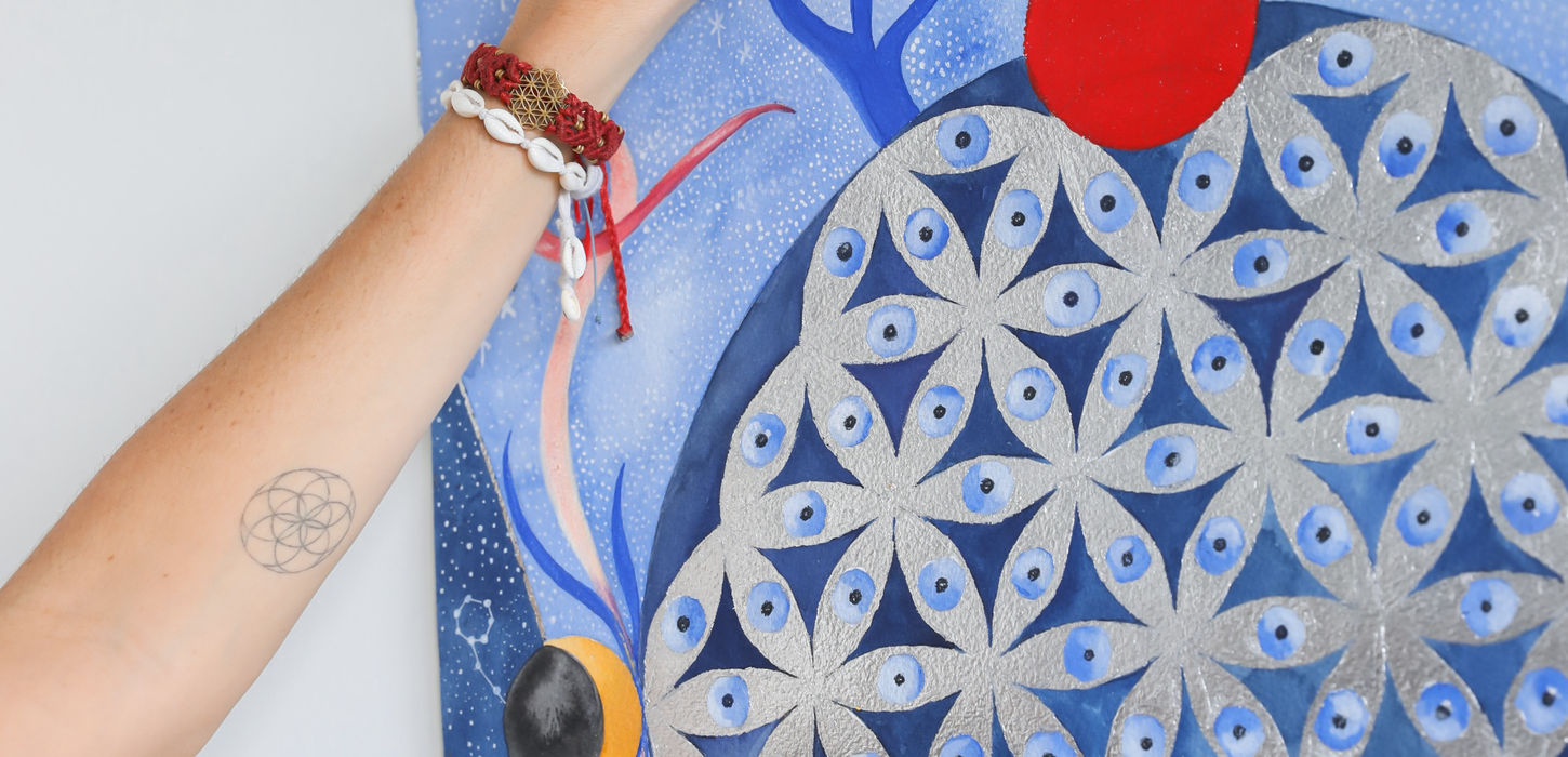 Mi obra actual está atravesada por el estudio de las sabidurías ancestrales, la espiritualidad y el simbolismo, campos que comencé a explorar a partir de un viaje de investigación a Egipto en 2023. Desde entonces, incorporo elementos de la Egiptología, la Geometría Sagrada, la Cristalosofía y el Eneagrama a mi práctica artística, integrando saberes que dialogan entre lo material y lo trascendente. También he realizado estudios en historia del arte y participado de prácticas contemplativas como el retiro de meditación Vipassana en Tailandia.